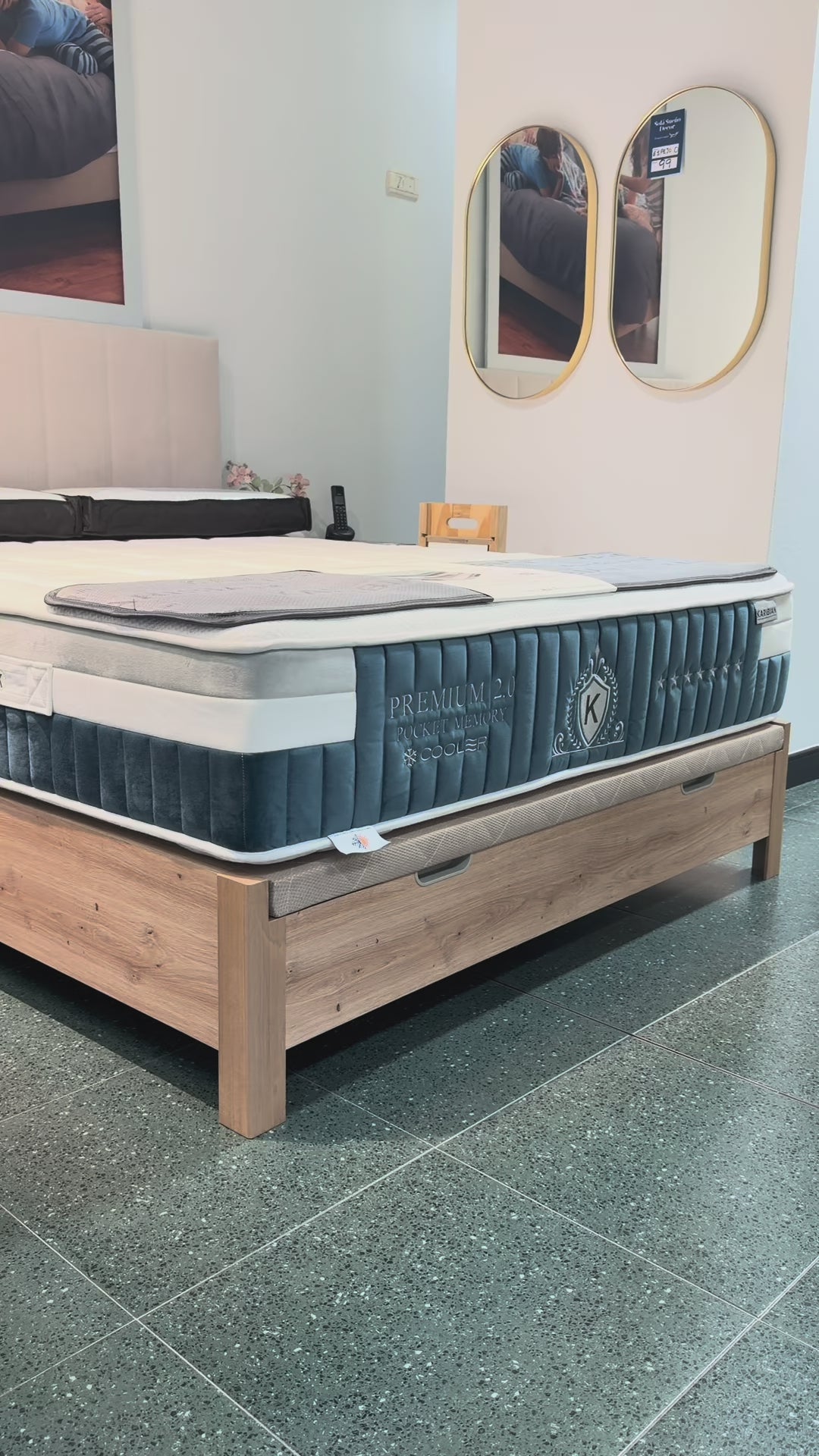 Cuenta con una tapa tapizada en tejido 3D, altamente transpirable y resistente, ideal para un descanso saludable. El tirador embutido mantiene una estética limpia y elegante, integrándose perfectamente en el diseño del canapé.